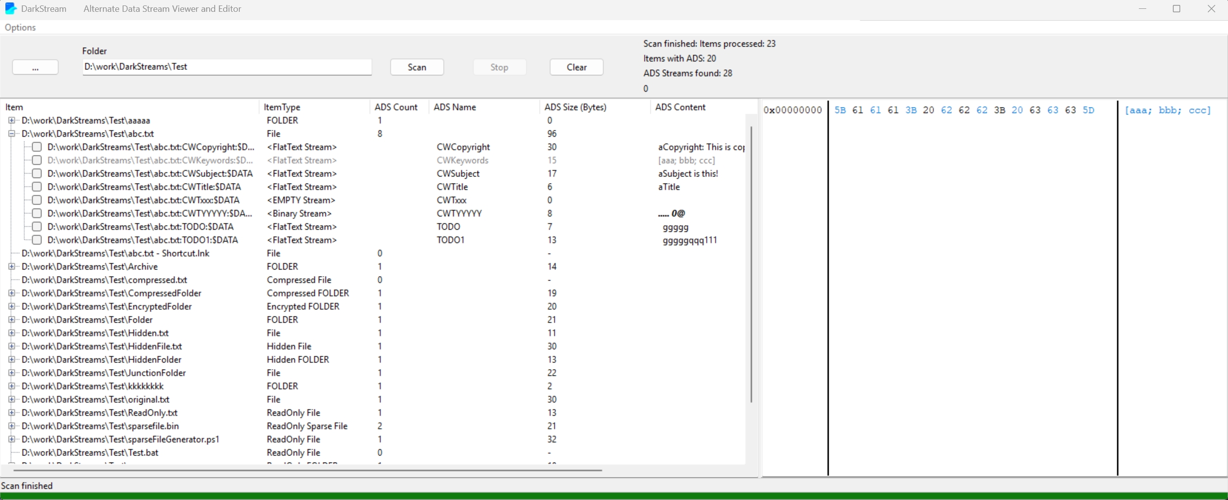 DarkStreamsAlternate Data Streams (ADS) are additional, invisible data segments that can be attached to NTFS files or folders. ADS is supported only on NTFS formatted volumes. Coming soon: DarkStreams™ is a viewer and editor for ADS with extensive features. Features